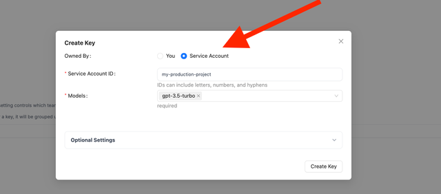 Set service_account_settings if you want to create settings that only apply to service account keys